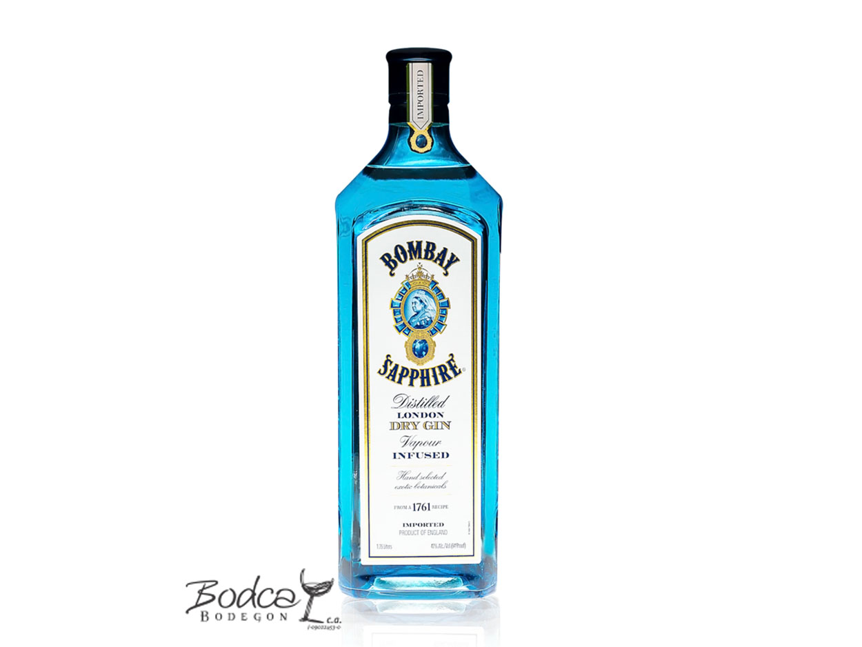 El nombre Bombay Sapphire proviene de la popularidad de la ginebra en la India en la época de la colonización británica. La botella de Bombay Sapphire London Dry Gin es azul con los botánicos grabados en los laterales y un escudo que hace referencia a la reina Victoria de Inglaterra. Su aroma presenta una combinación unificada de enebro, cilantro, limón y notas florares con un corazón más profundo y especiado y notas subyacentes de madera y hierba seca. Al paladar, transmite piel de limón y una dulzura media, seguidas de un enebro intenso y una dulzura ácida de limón, apoyados por notas de salida de cilantro y regaliz, equilibradas por las notas más profundas y especiadas que definen la base del paladar. Su acabado es dulce y seco con un carácter añadido de especias y limón y notas subyacentes ligeramente amaderadas. Bombay Sapphire London Dry Gin es perfecta para disfrutar en un Gin Tonic.