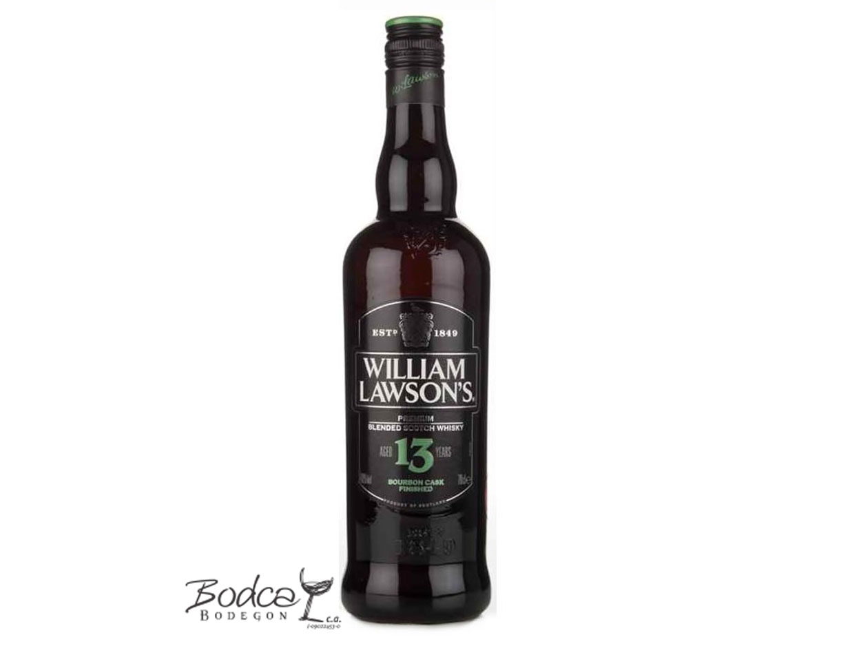 Teniendo como base de su composición el Scottish Gold 12, el William Lawson’s 13 años se añeja primero en barricas de roble durante 12 años y finalmente en barricas de bourbon quemado un año más; este último año le da un sabor oscuro y suave. De color ámbar brillante, en este extraordinario whisky se perciben aromas dulces y especiados. Su sabor es intenso, se evocan notas a frutos maduros recién cortados, cereales de malta tostados y finalmente caramelo tostado. Es perfecto para consumir solo, a las rocas o en un old-fashioned con hielo.